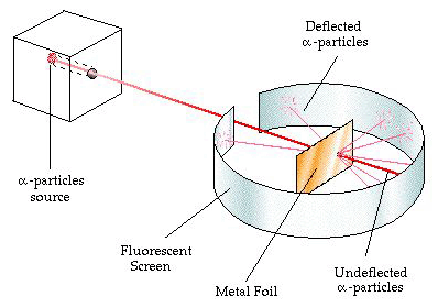 Sinar alfa yang bermuatan positif terpental jauh ketika menuju ke pusat atom.